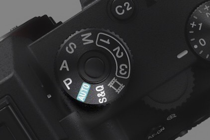 Auto setting on a Sony a7iii highlighted in green